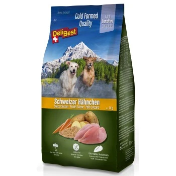 DeliBest Adult Sensitive Complete mit Schweizer Hähnchenfleisch bietet Ihrem Hund eine leckere und artgerechte Ernährung. Die vertrauten Rohstoffe werden durch die innovative und einzigartige Herstellung mittels Kaltformung schonend zu einem soften Futter verarbeitet. Die Kaltformung erhöht die Schmackhaftigkeit und die Ursprünglichkeit der wertvollen Inhaltsstoffe bleibt erhalten.