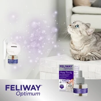 FELIWAY® Optimum ist eine Produktlösung für alle Katzenbesitzer, die hilft, alle üblichen Anzeichen von Stress bei Katzen zu reduzieren: