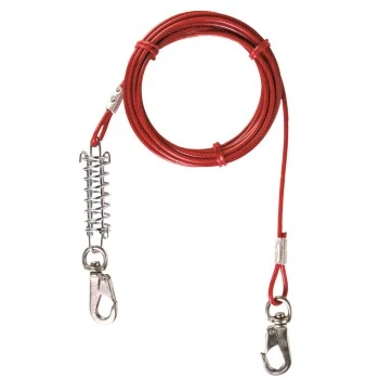 Anlegeleine mit Zugfederentlastung. Die 4,50 m lange Leine aus Drahtseil hat eine hohe Reißfestigkeit bis 400 kg. Geschützt ist sie durch eine Kunststoffummantelung. Ein Verdrehen der Leine wird durch die Metallwirbel der extra starken Bolzenhaken verhindert. Die Anlegeleine kann auch mit Hilfe des Bolzenhakens an einem freistehendem Objekt, z.B.an einem Baum, befestigt werden.