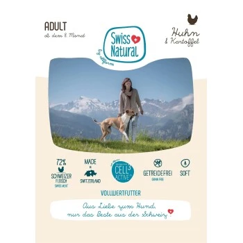 Swiss Natural Soft ADULT ist eine hochwertige getreidefreie Vollnahrung mit 72% Hühnerfleisch aus der Schweiz. Durch unser schonendes Herstellungsverfahren SOFT bleibt in den Futterbrocken bis zu 30% Restfeuchte enthalten. Mit dem Monoprotein und ImmunoCell3aktive steht dieses Futter für eine optimale Verträglichkeit.